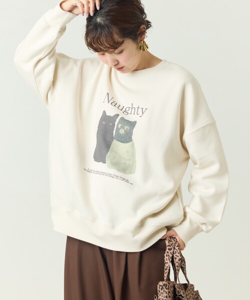 遊び心のある猫のプリントがポイントになったスウェット