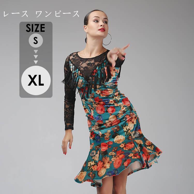 テンダンス ダンス衣装 演技服 レース ワンピース スタンダード タンゴ服 モダンドレス ワルツパーティー用 ダンスウエア イベント 花柄