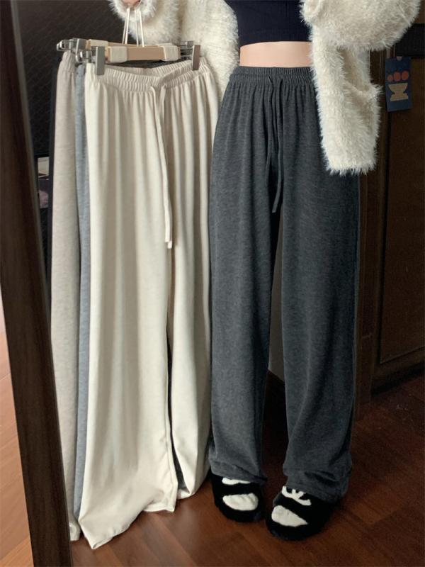 2024激安通販パンツ レディース 秋 冬 カジュアル ボトムス グレー ち 米 スウェット ストレート ドレープ ワイド レッグ ウォーキング スポーツ
