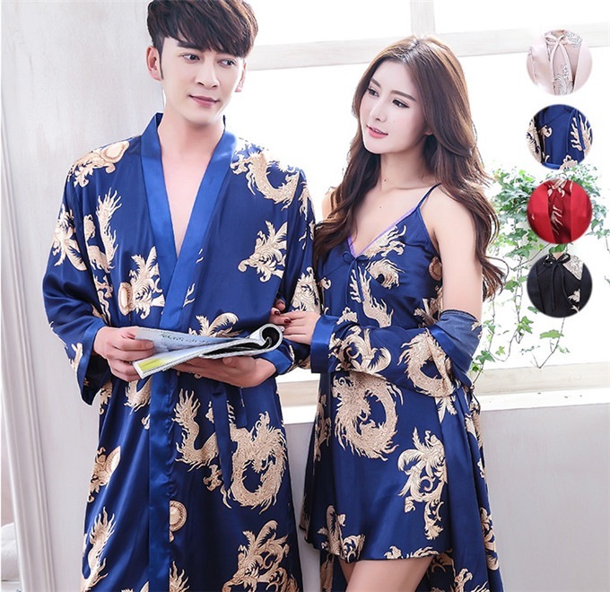 ペアパジャマ カップル ペアお揃い 絹 バスローブ レディースパジャマ 前開き 龍柄 ペアルック 部屋着 おしゃれ シルク メンズ 可愛い テーフー襟 ルームウェア 夏 カジュアル 結婚お祝い/結婚記